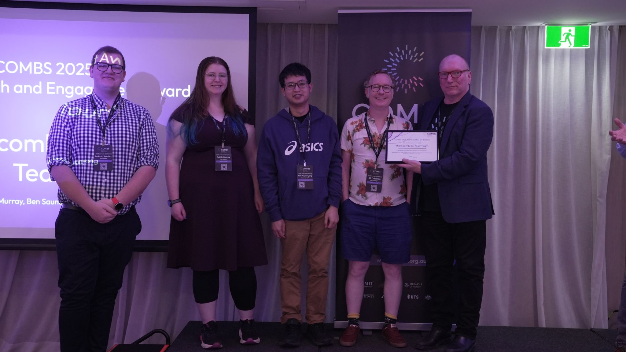 ✨ Team Outreach and Engagement Award – “Microcomb On Tour” Team (Ben Saunders, Caitlin Murray, Chawaphon (Park) Prayoonyong, and Bill Corcoran)